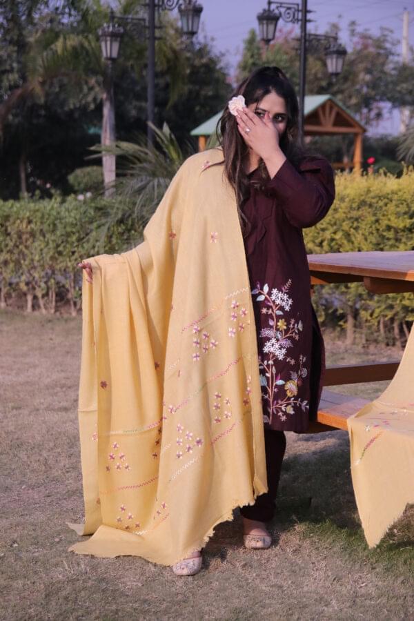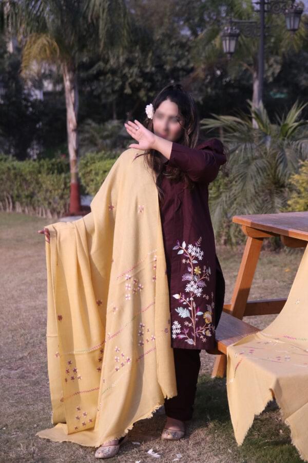 Designed with versatility in mind, this winter shawl is perfect for layering over your favorite outfits. Whether you’re dressing up for a special occasion or looking for a chic accessory for everyday wear, this shawl adds a touch of sophistication to any ensemble. The unique maroon embroidery showcases traditional craftsmanship while providing a modern twist, making it a timeless fashion piece.