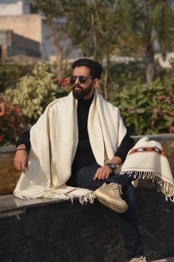 Pure Handmade Woolen White Men Chaddar